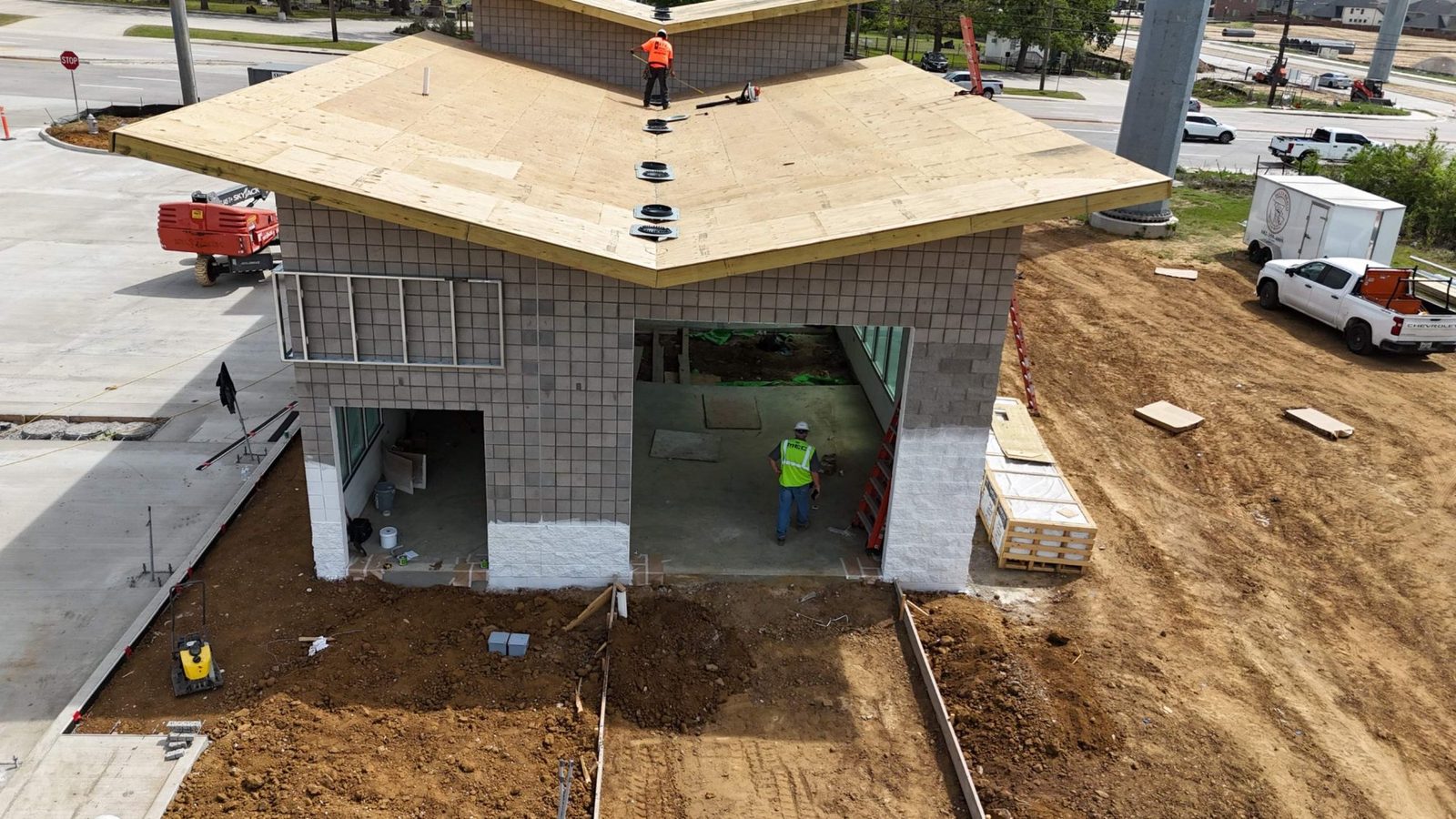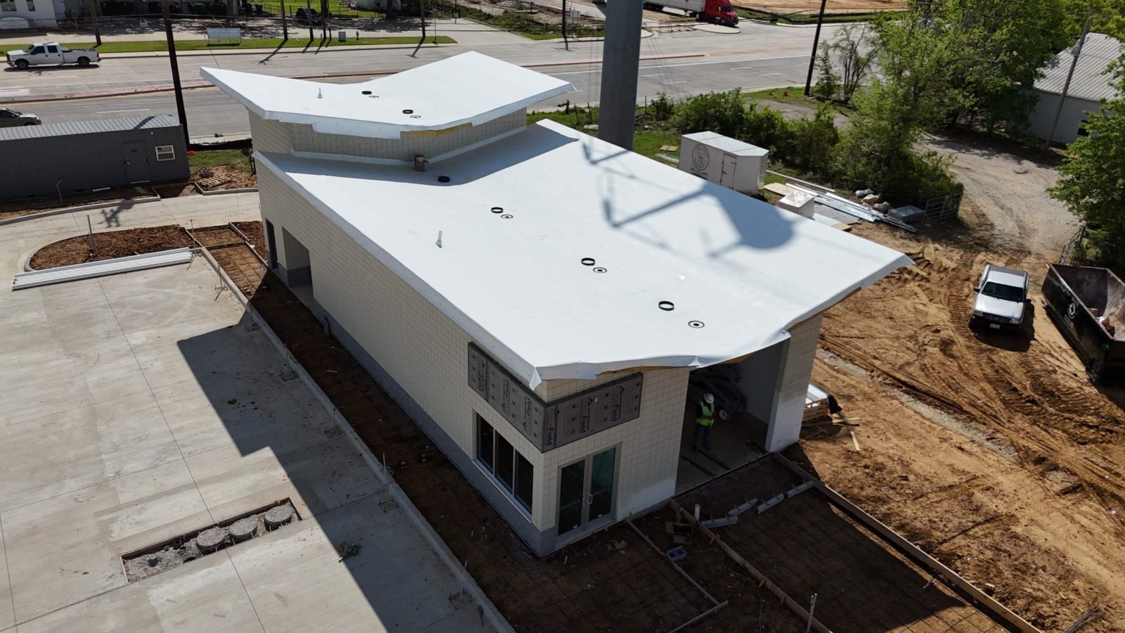 Ground-up express car wash development for Beach Club, part of an active rollout program across North Texas. RDG delivered full architecture and engineering services from site feasibility through construction documents, including entitlements, site design, and MEP coordination. The building's signature cantilevered roof and dual-canopy entry define the brand's on-site identity.